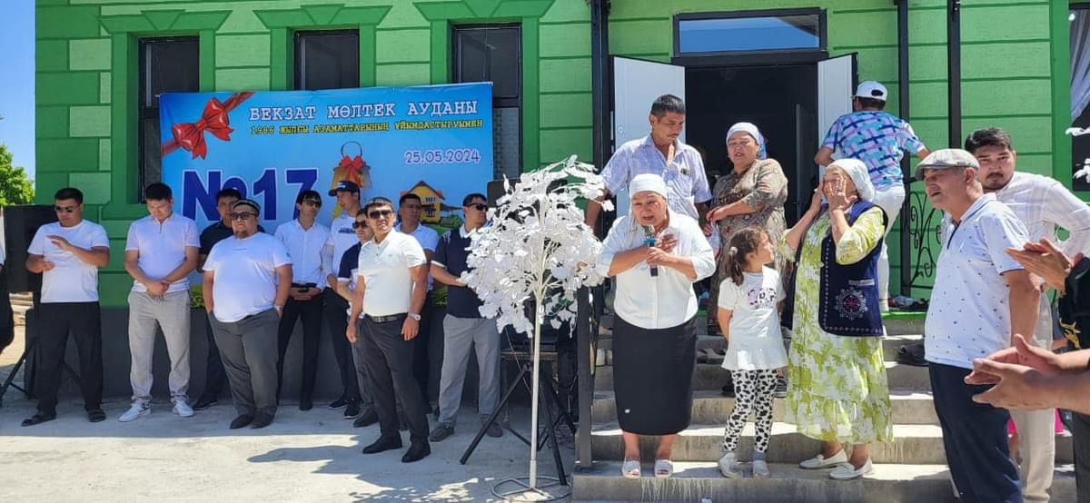 Аталған мөлтек ауданның азаматтарына мұндай бастама дәстүрге айналған. Бірнеше жыл қатарынан мұқтаж отбасыларды қуантып, алғысқа бөленіп келеді. Наурыз думан мерекесінде және 25 мамыр күні қарсаңында, жылына 2 рет беріледіі. Бұл – жанашыр жандардың тарапынан тарту етілген 17-ші баспана. Олар 2020 жылы дүниеден өткен достары Жарқынбек Өтеповтің отбасына үй салып берді. Соңғы қоңырау іс-шарасынан соң салтанатты түрде табысталды.