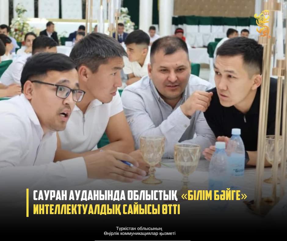 Сауран ауданында жастардың танымдық қабілетін арттырып, білім деңгейлерін көтеру мақсатында облыстық деңгейдегі «Білім бәйге» сайысы өтті. Интеллектуалды сайыста сөз алған аудан әкімі Мақсат Таңғатаров, аудандық мәслихаттың депутаты Хуршид Шарапов қатысушыларға сәттілік тіледі. Білімді жастардың басын қосқан сайысқа «AMANAT» партиясы Сауран аудандық филиалының төрағасы Сағынбек Жақсыбекұлы, Сауран ауданы ішкі саясат бөлімінің басшысы Нұрғазы Байғазыұлы, Түркістан облысы қоғамдық даму басқармасының «Жастар ресурстық орталығы» мекемесі басшысының орынбасары Пердебек Сержанұлы мен қоғам белсендісі Гүлнар Өстемірқызы әділ қазылық жасады.