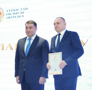 Нұрболат Пернеханов, Палатаның Арыс қаласы филиалының директоры, өңірлік кәсіпкерлікті дамытудағы белсенді еңбегі мен ұйымшылдығы үшін Алғыс хатпен марапатталды.