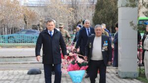 Жиналған қауым алдымен сол соғыста мерт болған жауынгерлердің құрметіне қойылған монументке гүл шоқтарын қойып, марқұмдарды бір минуттық үнсіздікпен еске алды.