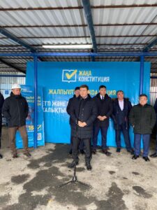 Түркістан өңірінде жаңа Конституция жобасын елге таныстыру жұмыстары тұрақты түрде жүргізіліп жатыр. Нақтырақ айтқанда, жалпыұлттық коалиция мүшелері аудан, қалаларға арнайы барып, азаматтармен кездесіп, ақпараттық-түсіндіру іс-шараларын атқарып келеді. Осындай жиынның бірі Төлеби ауданындағы «Qazaq Bitum» ЖШС-да өткізіліп, коалиция мүшелері, Парламент Сенатының депутаттары Әли Бектаев, Мұрат Қадырбек, Әлішер Сатвалдиев, облыстық мәслихат депутаттары Ғалымжан Елшібай, Ханай Әшірбеков және “AMANAT” партиясы Түркістан облыстық филиалы атқарушы хатшысының орынбасары Полат Тұрсынбаев еңбек ұжымына заңнамалық реформаның мән-маңызын айтып берді. Оның ішінде жаңа конституциялық өзгерістердің өндіріс саласын дамытудағы рөлі, адал бәсекелестікті қалыптастыру, еңбек адамдарының құқықтарын қорғау және әлеуметтік қолдау тетіктерін жетілдіру мәселелері сөз болды.