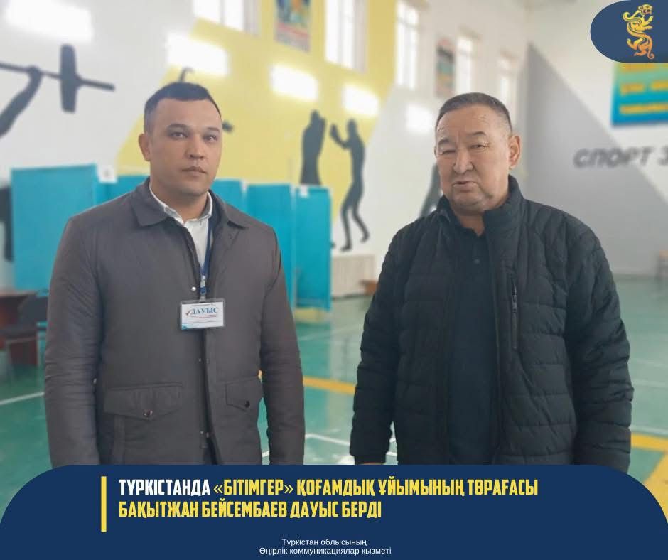 Түркістан қаласындағы №881 дауыс беру учаскесінде «Бітімгер» қоғамдық ұйымының төрағасы Бақытжан Бейсембаев өз азаматтық міндетін орындап, референдумда дауыс берді. Ол дауыс беру арқылы әрбір азаматтың қоғам өміріне белсенді араласуының маңыздылығын атап өтті.
