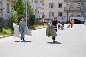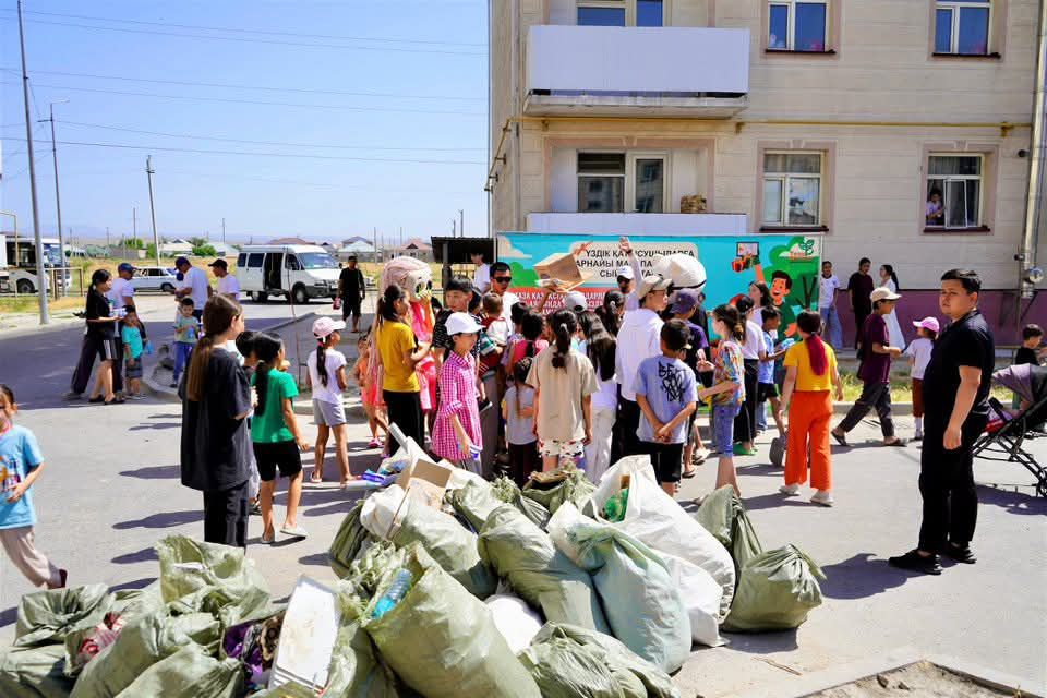 В городе Кентау в рамках программы «Таза Қазақстан» проведено мероприятие по уборке дворов многоэтажных жилых домов. Проект с участием жителей города, в том числе родителей и детей, приурочен к Международному дню «Мир без отходов» с целью охраны окружающей среды под названием «Один пакет мусора — одно мороженое».