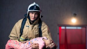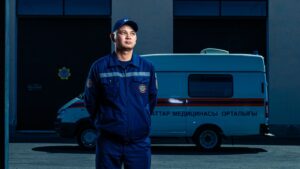«Атырау» жаяу жүргіншілер көпірінде ТЖМ қызметкерлерінің 112 портреті ұсынылған — олар өрт сөндірушілер, құтқарушылар, сүңгуірлер, кинологтар, медицина қызметкерлері, ұшқыштар, психологтар және әскери қызметшілер.