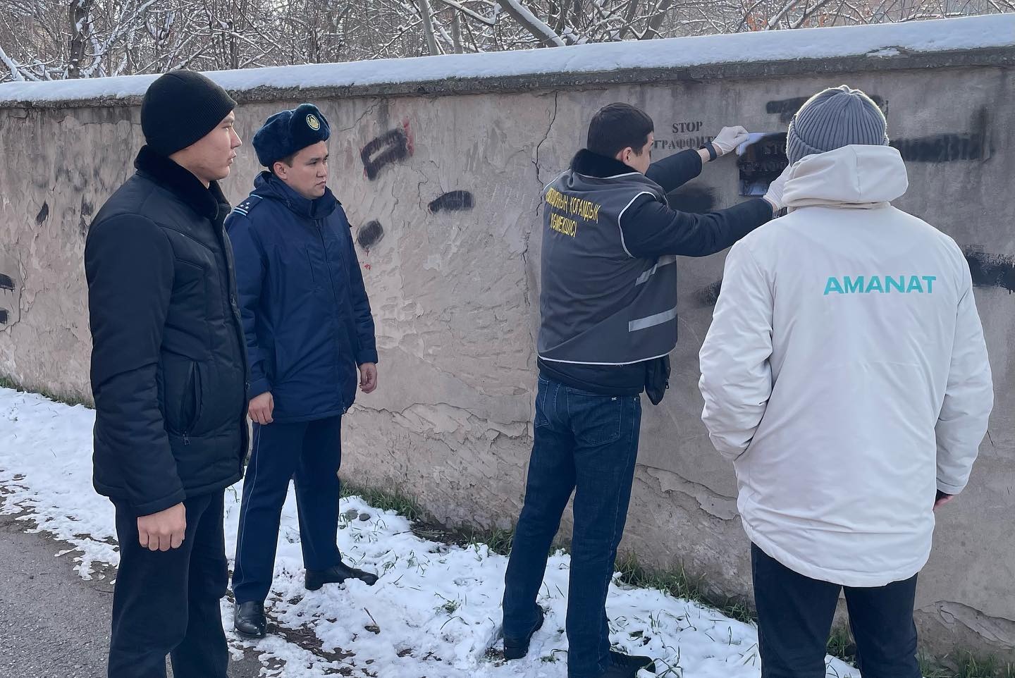 Шымкент шаһарында «AMANAT» партиясы «Жастар рухы» жастар қанатының белсенділері қалалық полиция департаментінің мамандарымен бірлесе пайдалы акция өткізді. «Стоп-граффити» жедел-профилактикалық іс-шарасы барысында қала аумағында жалпы саны 731 есірткі жарнамасы жойылды.